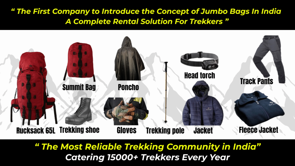 - Jumbo Bag at ₹ 2500/person for entire Trek (Click here to know more)